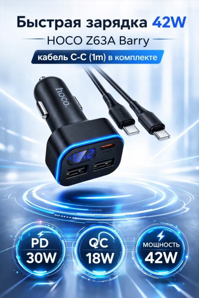 HOCO Z63A Barry 42W — идеальное сочетание мощности, безопасности и стиля для тех, кто ценит скорость и удобство в каждой поездке.