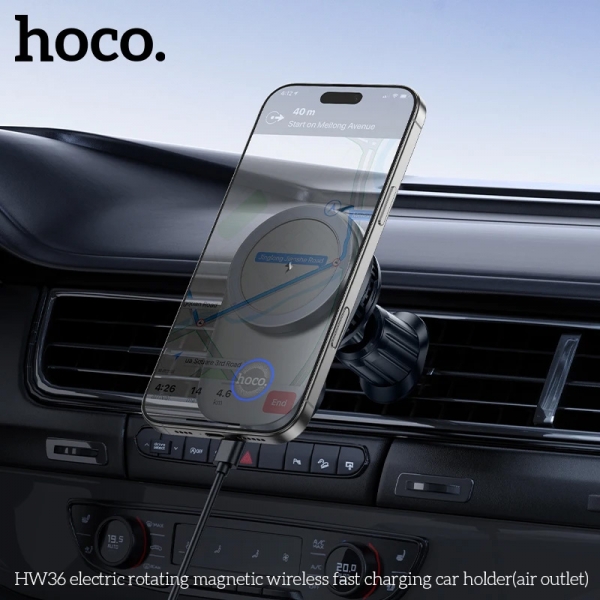 Автомобильный держатель Hoco HW36 — удобное и современное решение для вашего смартфона в дороге. Он оснащён беспроводной быстрой зарядкой и мощной магнитной фиксацией, благодаря чему телефон надёжно держится на месте даже на неровной дороге. Поддержка автоматического вращения позволяет легко повернуть экран для навигации в горизонтальное или вертикальное положение.