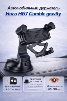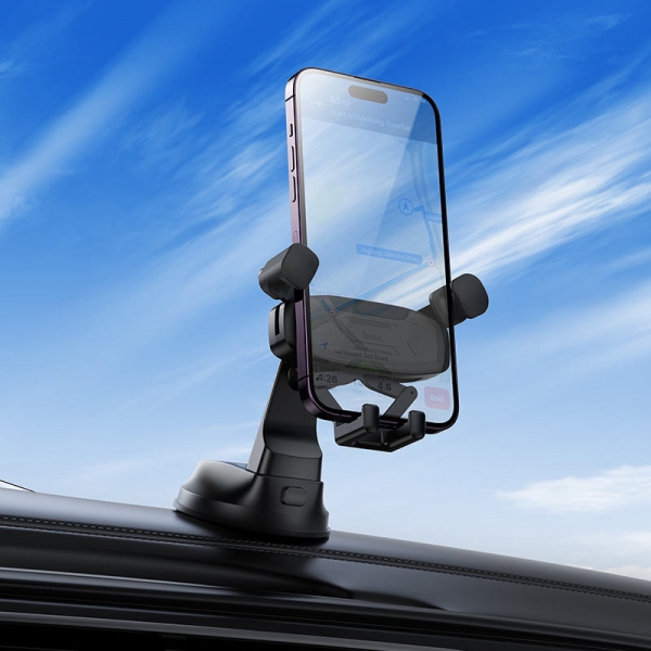 Автомобильный держатель предназначен для надежной фиксации смартфона на панели приборов. Гравитационный механизм автоматически подстраивается под устройство, обеспечивая удобство использования во время поездки.