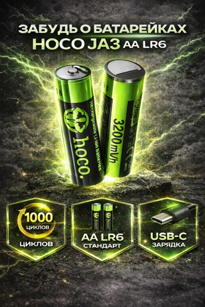 Хватит покупать одноразовые батарейки. HOCO JA3 — мощные перезаряжаемые аккумуляторы нового поколения с зарядкой прямо через USB-C. Зарядил — работаешь дальше.