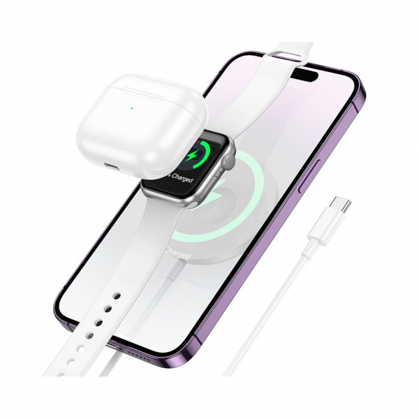 Беспроводное зарядное устройство HOCO CW50 Fast 3-in-1 Magnetic – стильное и компактное решение для быстрой зарядки ваших устройств. Подходит для смартфонов, беспроводных наушников и смарт-часов. Благодаря магнитному позиционированию идеально совместимо с iPhone 12–15 серии: устройство фиксируется точно и надёжно.