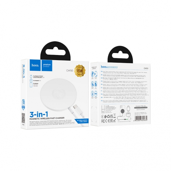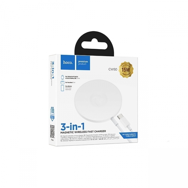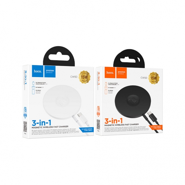 HOCO CW50 Fast 3-in-1 Magnetic – это сочетание удобства, безопасности и современного дизайна для быстрой зарядки ваших устройств без лишних проводов