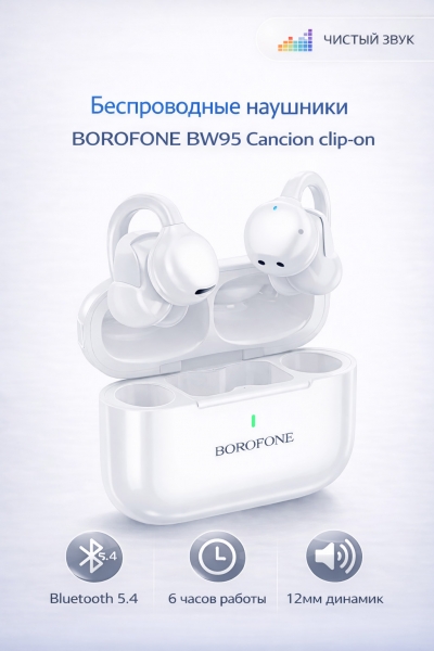 Открытые беспроводные наушники с клипсовой конструкцией обеспечивают комфортную посадку без перекрытия слухового канала. Эластичный держатель из сплава с эффектом памяти Ni-Ti надёжно фиксируется на ухе, позволяя слушать музыку и оставаться в курсе окружающих звуков. Большие 12-мм динамики дают чистое и насыщенное звучание, а Bluetooth 5.4 обеспечивает стабильное соединение.
