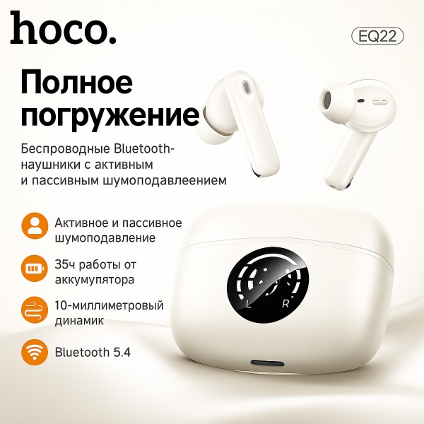Hoco EQ22 Singer True Wireless — это универсальные наушники, которые подойдут для занятий спортом, общения и прослушивания музыки. Они обеспечивают свободу движения, качественный звук и удобство в любой ситуации.