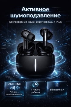 Hoco EQ34 Plus Rima TWS — идеальный выбор для тех, кто ценит качественный звук, удобство и современные технологии.
