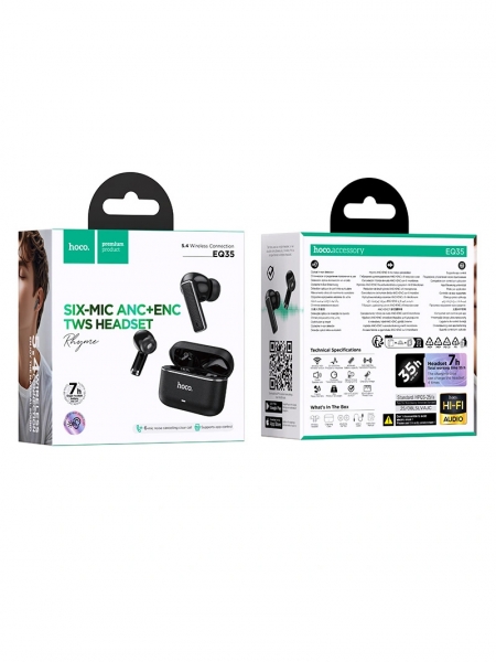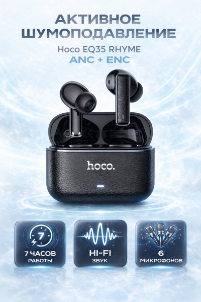 Hoco EQ35 Rhyme — это мощные TWS-наушники с активным шумоподавлением ANC и системой ENC для кристально чистых звонков. 6 микрофонов, Bluetooth 5.4 и чип JL AC7016 обеспечивают стабильное соединение, глубокий бас и чистый звук даже в шумном городе.