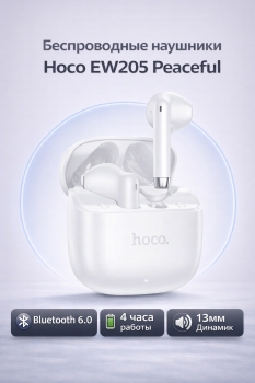 Беспроводные наушники Hoco EW205 Peaceful – компактные TWS наушники формата semi in ear с комфортной посадкой, чистым звуком и стабильным подключением. Подходят для музыки, фильмов, игр и звонков, обеспечивают низкую задержку и удобное управление.