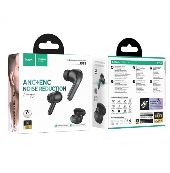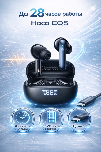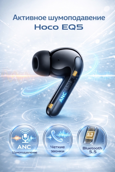 HOCO EQ5 Energy — мощные TWS-наушники с активным шумоподавлением, глубоким басом и длительным временем работы. Идеальный выбор для музыки, звонков, работы и повседневного использования.