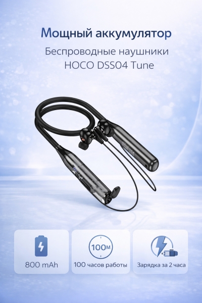 Беспроводные наушники HOCO DSS04 Tune — это сочетание спортивного комфорта, мощного аккумулятора и стабильного соединения. Легкая шейная конструкция надежно фиксируется во время движения, а технология ENC снижает посторонние шумы при звонках, делая голос четким и разборчивым. Модель идеально подходит для тренировок, прогулок и активного ритма жизни.