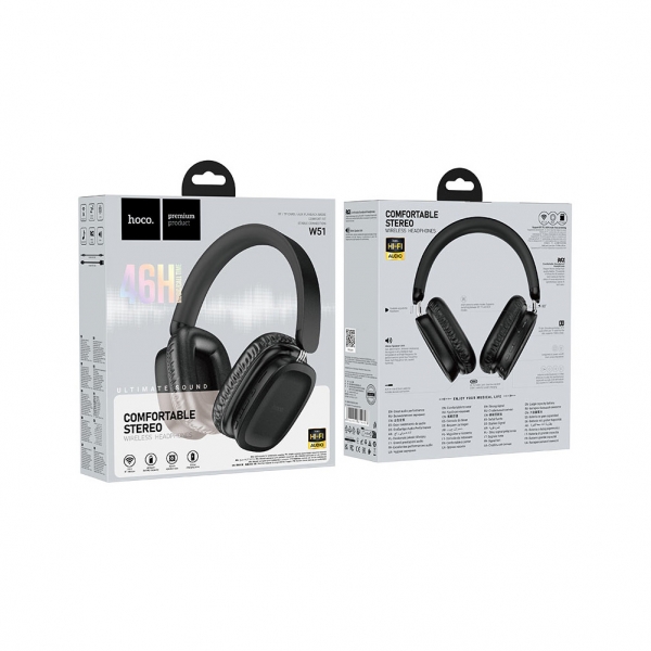 Беспроводные полноразмерные наушники Hoco W51 Delightful — до 46 часов работы, BT5.3, AUX/TF, чёрные
