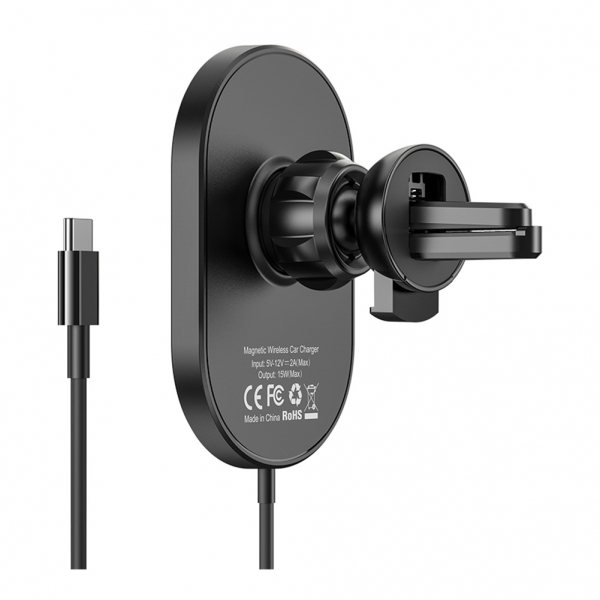 Беспроводная зарядка мощностью до 15 Вт позволяет быстро восполнить заряд без лишних проводов, а магнитное крепление удерживает телефон даже при движении по неровной дороге. Компактный размер и стильный дизайн делают держатель удобным дополнением к интерьеру любого автомобиля.