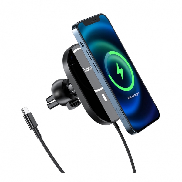 Держатель автомобильный с беспроводной зарядкой Hoco CA90 Powerful — это удобное и современное решение для быстрой зарядки смартфона во время поездок. Совместим с сериями iPhone 12/13/14/15, поддерживает технологию MagSafe и обеспечивает надежную фиксацию устройства.
