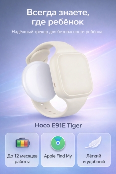 Hoco E91E Tiger — надёжный детский трекер-браслет, который поможет вам всегда быть на связи с ребёнком и чувствовать уверенность в его безопасности.