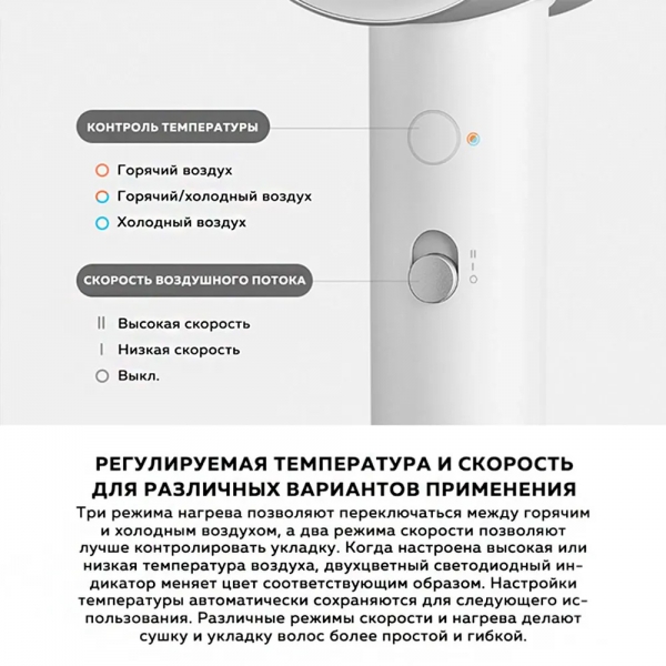 Фен Mijia H500 — это идеальный выбор для тех, кто ищет эффективное и бережное решение для ухода за волосами, сочетая современные технологии с элегантным дизайном.