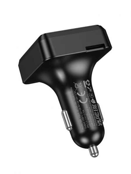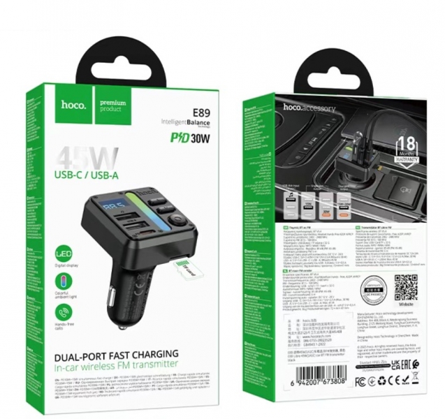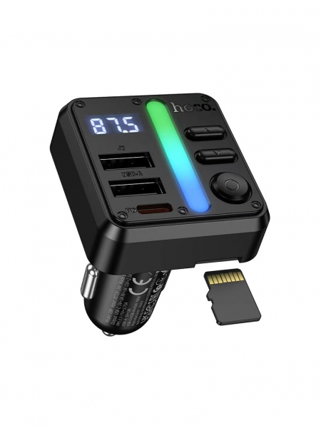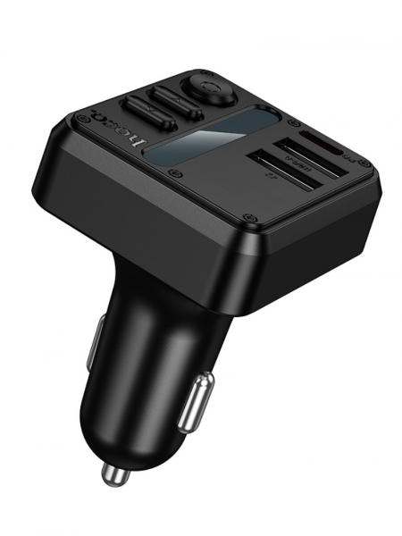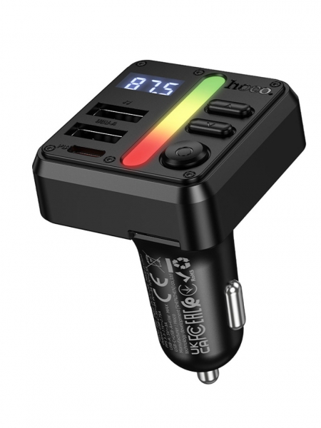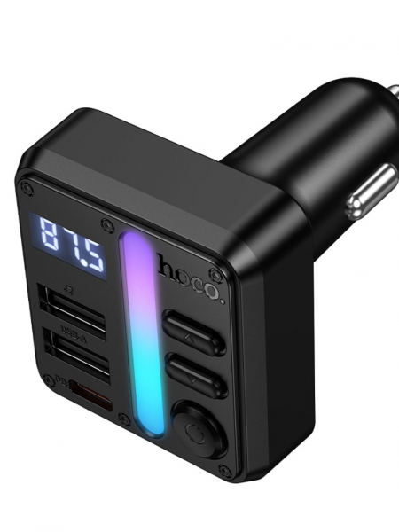 HOCO E89 - многофункциональный автомобильный трансмиттер, который объединяет в себе беспроводную передачу музыки, громкую связь и мощное зарядное устройство. Подходит для автомобилей без встроенного Bluetooth и с разъёмом прикуривателя 12–24 В.
