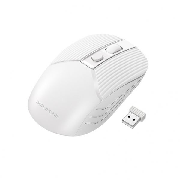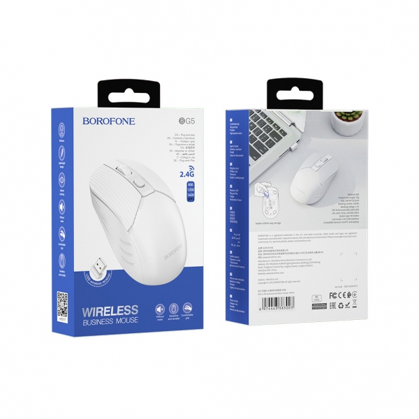 Беспроводная мышь Borofone BG5 Business Wireless — это сочетание эргономичного дизайна, высокой точности и стабильной работы. Лёгкая и стильная, она идеально подходит как для офиса, так и для дома. Благодаря беспроводному подключению 2.4G вы получите стабильный сигнал без задержек и помех. Современный чип MX8650 обеспечивает плавное и точное движение курсора, а три уровня чувствительности DPI (800 / 1200 / 1600) позволяют настроить скорость под любые задачи — от офисной работы до графики и игр. Модель выполнена из прочного ABS-пластика, имеет удобную форму, хорошо лежит в руке и не вызывает усталости даже после долгого использования. 4D-кнопки обеспечивают комфортное управление и быструю реакцию. Срок службы переключателей достигает 3 миллионов нажатий, а колёсико выдерживает до 200 тысяч прокруток. Мышь совместима с большинством настольных ПК и ноутбуков, работает сразу после подключения — драйверы не требуются.
