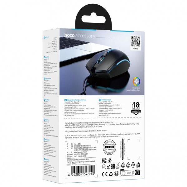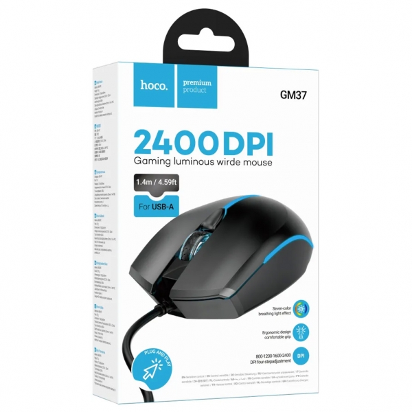 Hoco GM37 Gaming — это сочетание точности, комфорта и современного дизайна, которое помогает побеждать в каждой игре.
