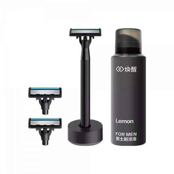 Xiaomi Mijia Lemon Razor H303-5 – набор для бритья в комплект которого входит держатель бритвы, два бритвенных лезвия, пена для бритья с лимонным ароматом (60 г), основание бритвы и руководство. Высококачественные лезвия бритвы обладают алмазным гальваническим покрытием и обеспечивают гладкое бритье. Пена для бриться эффективно увлажняет кожу, не вызывает раздражения и обеспечивает плавное скольжение лезвия по поверхности кожи. Продуманная подставка позволит удобно хранить бритву в вертикальном положении.