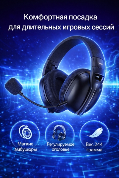 Наушники Hoco W114 Magic four-mode gaming обеспечивают мощный звук, комфортную посадку и стабильную связь — отличный выбор для геймеров и активных пользователей.