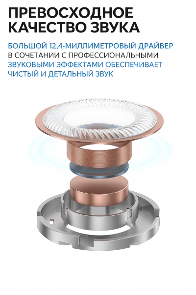 Благодаря динамическому драйверу 12,4 мм наушники воспроизводят чистое, насыщенное звучание с глубокими басами и естественными высокими частотами.