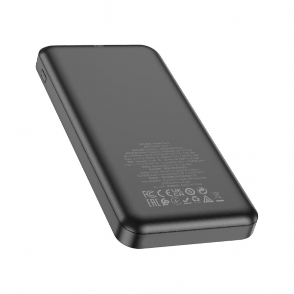 Пауэрбанк оснащён двумя входами (Micro-USB и Type-C) и двумя выходами (USB-A и Type-C), что позволяет одновременно заряжать несколько устройств. Максимальная мощность зарядки через Type-C достигает 20 Вт, что делает модель отличным решением для современных гаджетов.