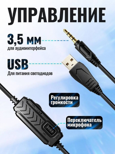 Наушники оснащены надежным кабелем длиной 2 метра с комбинированным подключением 3.5 мм + USB-A, что обеспечивает универсальную совместимость с ПК, ноутбуками, игровыми консолями и другими устройствами.