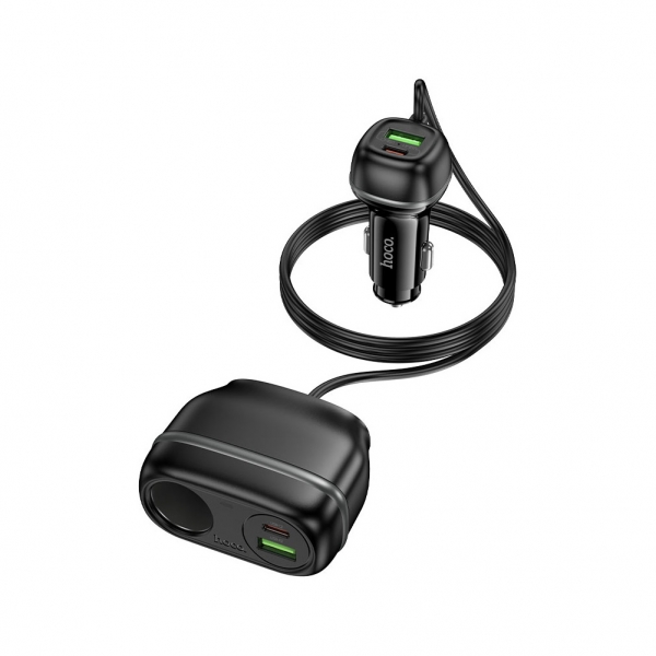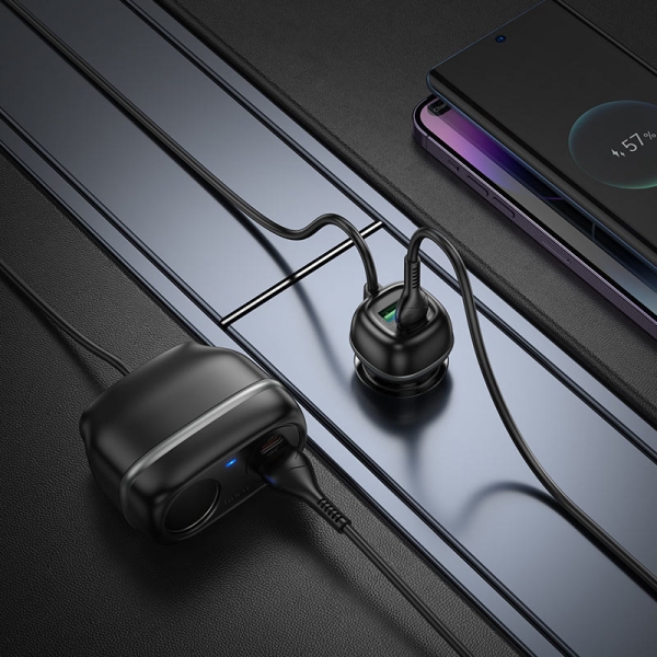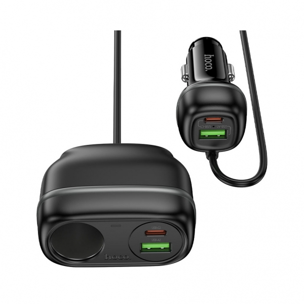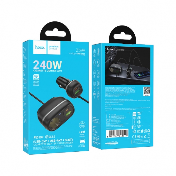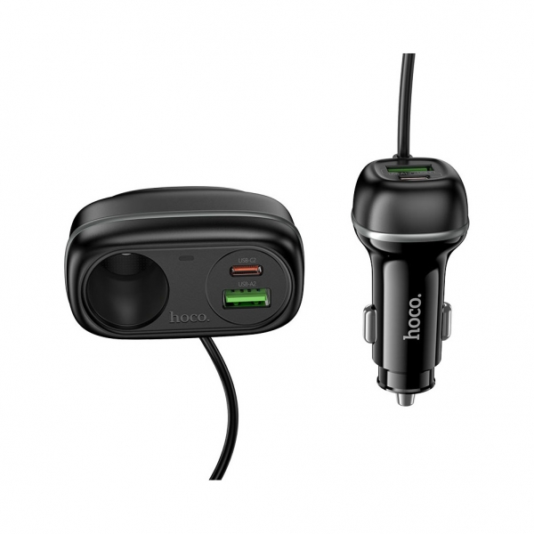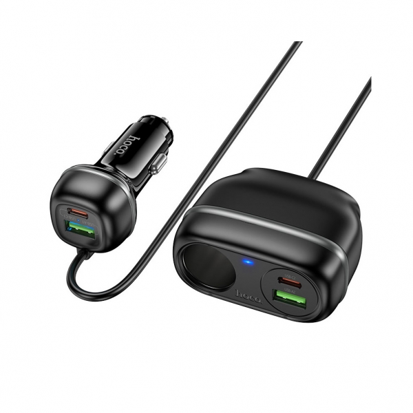 Разветвитель прикуривателя, автомобильное зарядное устройство HOCO Z59A Rank 96W (2C2A) – универсальное устройство для питания и зарядки нескольких гаджетов в автомобиле. Модель оснащена четырьмя портами (два Type-C и два USB-A) и дополнительным гнездом прикуривателя, что позволяет одновременно подключать смартфоны, планшеты, навигаторы и другие устройства.