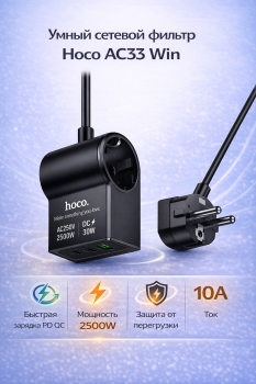 Компактный и мощный сетевой фильтр для дома и офиса с поддержкой быстрой зарядки. Подходит для одновременного подключения техники и зарядки смартфонов, планшетов и ноутбуков. Высокая мощность 2500W и современные протоколы обеспечивают стабильную и безопасную работу.