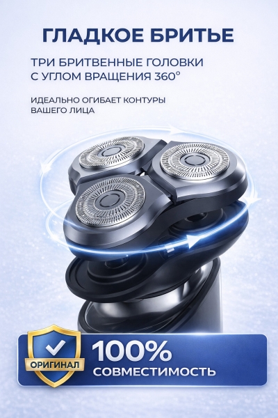 Со временем ножи теряют остроту, что снижает качество бритья и может вызывать раздражение кожи. Замена бритвенной головки позволяет вернуть гладкость, чистый срез и комфорт при ежедневном использовании. Тройная роторная система с многолезвийной конструкцией обеспечивает плотный захват щетины и равномерное бритьё без пропусков.