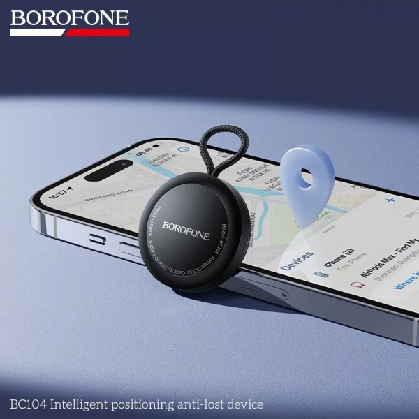 Трекер Borofone BC104 Intelligent Positioning Anti-lost Device — компактное устройство для поиска ключей, рюкзака, сумки, чемодана и других ценных вещей. Работает через сеть Apple Find My, поэтому не требует отдельного приложения. Просто привяжите трекер к своему устройству и контролируйте местоположение в режиме реального времени через приложение «Локатор» на iPhone или iPad.