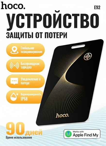 Трекер HOCO E92 Saviour помогает быстро находить потерянные вещи и защищает от лишних переживаний. Работает через сеть Apple Find My — просто прикрепите его к ключам, сумке, рюкзаку, чемодану или документам и всегда будете знать, где находится ваша вещь. При удалении от предмета устройство отправит уведомление на iPhone — потерять что-то теперь намного сложнее. Компактный и тонкий корпус толщиной всего 1,6 мм не ощущается в повседневном использовании, а влагозащита IP68 позволяет не переживать за дожди и случайные попадания воды. Трекер поддерживает беспроводную зарядку и легко восстанавливает заряд без проводов. Одной батареи хватает на 2–3 месяца автономной работы, после чего её можно быстро пополнить энергией. Совместим с iPhone SE, iPhone 6s и новее с iOS 14.5+, iPad Pro, iPad 5-го поколения+, iPad Air 2+, iPad mini 4+, iPod touch 7-го поколения. Не работает с Android — создан специально для пользователей Apple. Выбирая HOCO E92 Saviour, вы обеспечиваете безопасность своих вещей и экономите время на поиски. Всегда на связи, всегда под контролем.