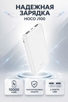 Внешний аккумулятор Hoco J100 High-ranking 10000mAh - компактный пауэрбанк для ежедневной зарядки