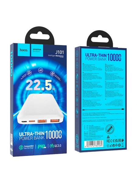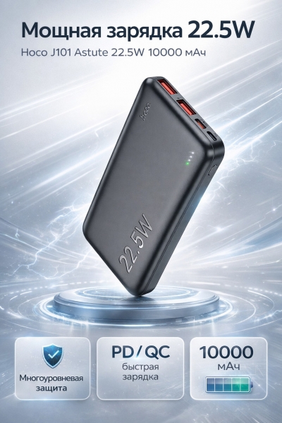 Внешний аккумулятор Hoco J101 Astute 22.5W 10000 мАч - мощная портативная зарядка с быстрой зарядкой для смартфонов и гаджетов