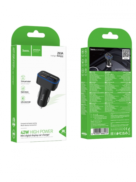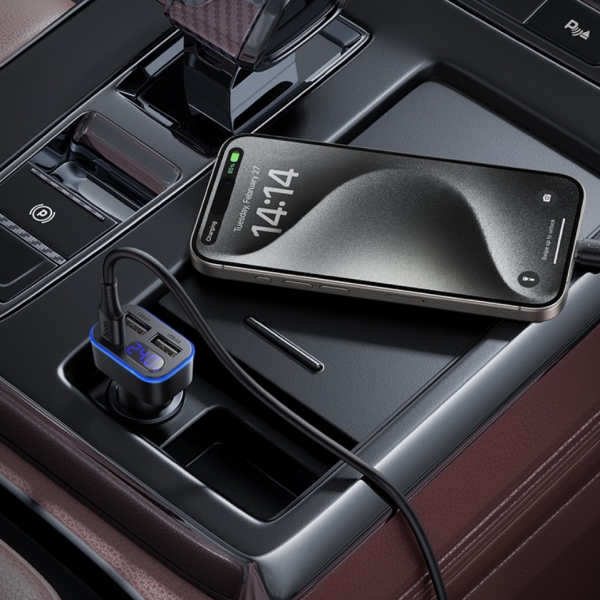 Мощное зарядное устройство в прикуриватель с поддержкой быстрой зарядки до 42 Вт. Оснащено портом USB-C 30 Вт и двумя USB-портами. Поддерживает современные протоколы быстрой зарядки PD, QC, FCC и AFC, обеспечивая быструю и стабильную зарядку смартфонов и других гаджетов в автомобиле.
