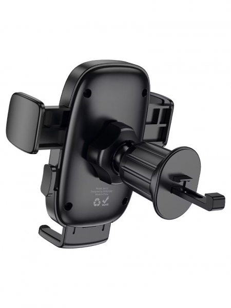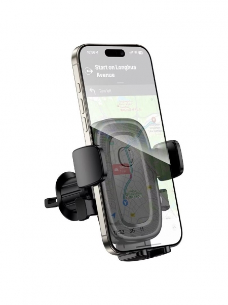 Держатель устанавливается в дефлектор вентиляции и надежно удерживается даже во время движения. Корпус выполнен из прочного ABS-пластика с силиконовыми вставками, которые защищают смартфон от царапин и предотвращают скольжение. Компактная конструкция не перекрывает обзор и подходит для повседневных поездок.