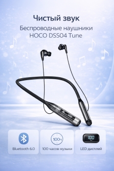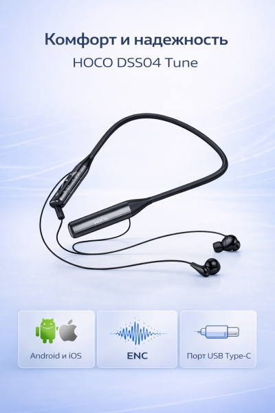 Беспроводные наушники HOCO DSS04 Tune — это сочетание спортивного комфорта, мощного аккумулятора и стабильного соединения. Легкая шейная конструкция надежно фиксируется во время движения, а технология ENC снижает посторонние шумы при звонках, делая голос четким и разборчивым. Модель идеально подходит для тренировок, прогулок и активного ритма жизни.