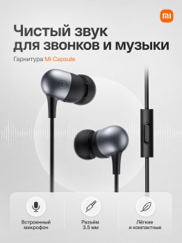 Гарнитура проводная Xiaomi Mi Capsule DDQ01WM с микрофоном 3.5 мм для телефона смартфона внутриканальные