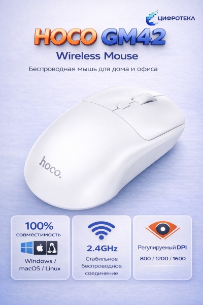 Беспроводная мышь HOCO GM42 Platino — практичное и надежное решение для работы и повседневного использования. Модель отличается стабильным соединением, эргономичным дизайном и длительным сроком службы, что делает её удобной как для офиса, так и для дома.