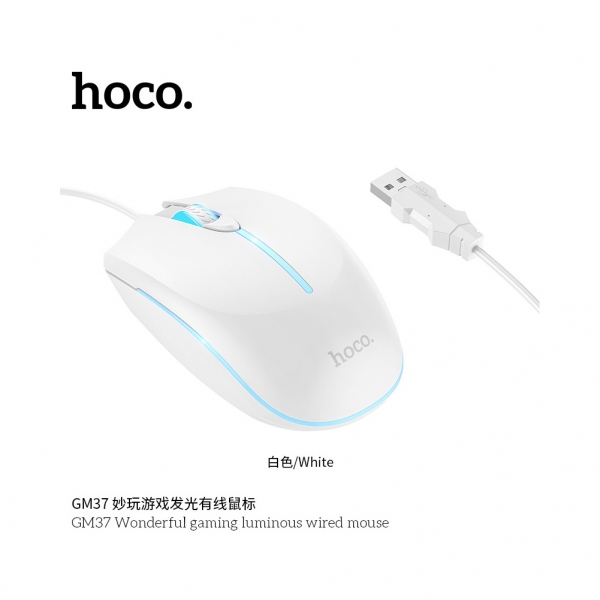 Мышь проводная игровая Hoco GM37 Gaming 1.4м белая с подсветкой