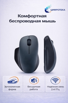 Подключение осуществляется по стабильному каналу 2.4 ГГц, не создающему задержек и идеально подходящему для работы за ноутбуком или настольным ПК. Мышь совместима с Windows 10 и выше, а также с macOS 10.13+, что делает её универсальной для большинства устройств. Работает от одной батарейки AA, сохраняя низкое энергопотребление.