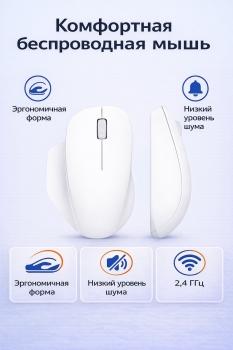 Подключение осуществляется по стабильному каналу 2.4 ГГц, не создающему задержек и идеально подходящему для работы за ноутбуком или настольным ПК. Мышь совместима с Windows 10 и выше, а также с macOS 10.13+, что делает её универсальной для большинства устройств. Работает от одной батарейки AA, сохраняя низкое энергопотребление.