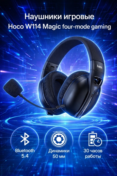 Наушники Hoco W114 Magic four-mode gaming обеспечивают мощный звук, комфортную посадку и стабильную связь — отличный выбор для геймеров и активных пользователей.