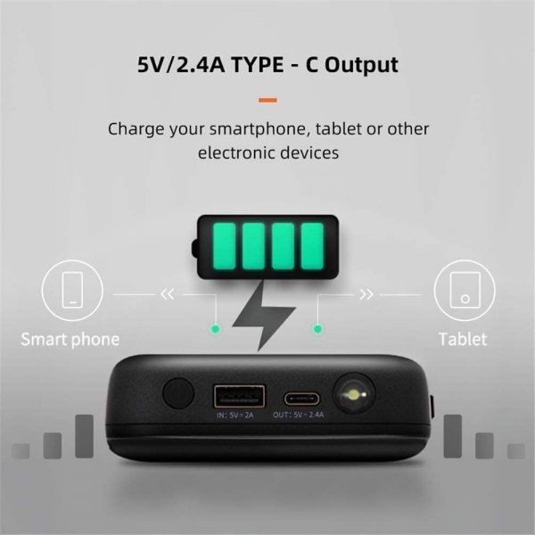 Порт USB 5В / 2.4A позволяет быстро заряжать смартфоны и гаджеты, а разъём 12 В используется для запуска автомобиля. Устройство работает в диапазоне температур от –20 до +60°C, что делает его надёжным в любых погодных условиях.