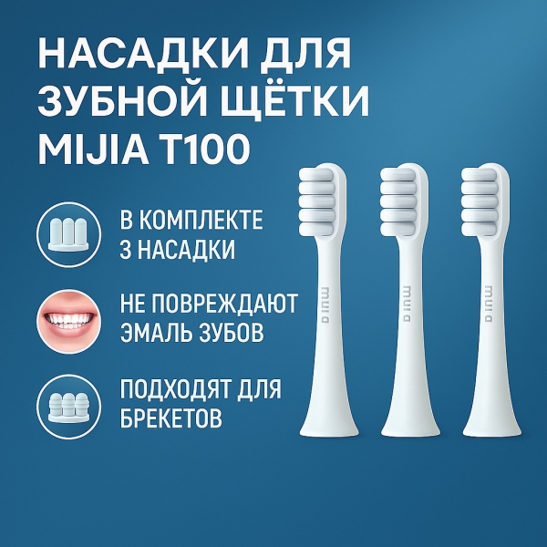 Полная совместимость – насадки разработаны специально для модели Mijia T100, легко устанавливаются и надежно фиксируются.