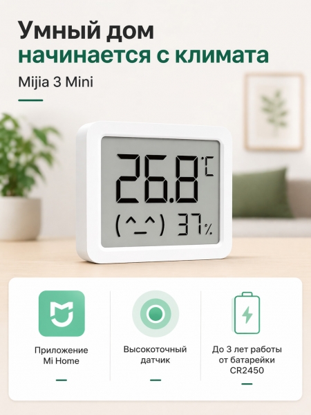Умный термометр и гигрометр Mijia Smart Thermometer and Humidity Meter 3 Mini MJWSD06MMC – датчик температуры и влажности для дома