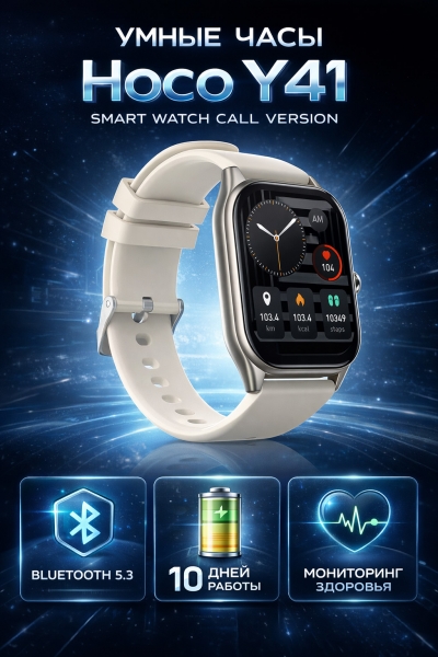 Hoco Y41 — это крупный экран, звонки с руки, контроль здоровья и отличная автономность в одном устройстве. Берите сейчас и получите умные часы, которые реально работают на вас каждый день.