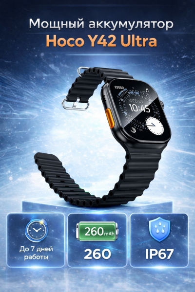 Смарт часы HOCO Y42 Ultra — это универсальные умные часы с функцией звонков, фитнес-трекером и большим HD экраном. Подойдут как мужские смарт часы и женские смарт часы для спорта, работы и активного образа жизни.