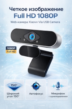 Веб-камера Xiaovv Via USB Camera 1080P (XVV-3320S-USB) - максимум качества — без лишних настроек. Full HD 1920×1080 обеспечивает четкую, яркую картинку, а широкий угол обзора 150° захватывает больше пространства — идеально для работы, учебы и стриминга.